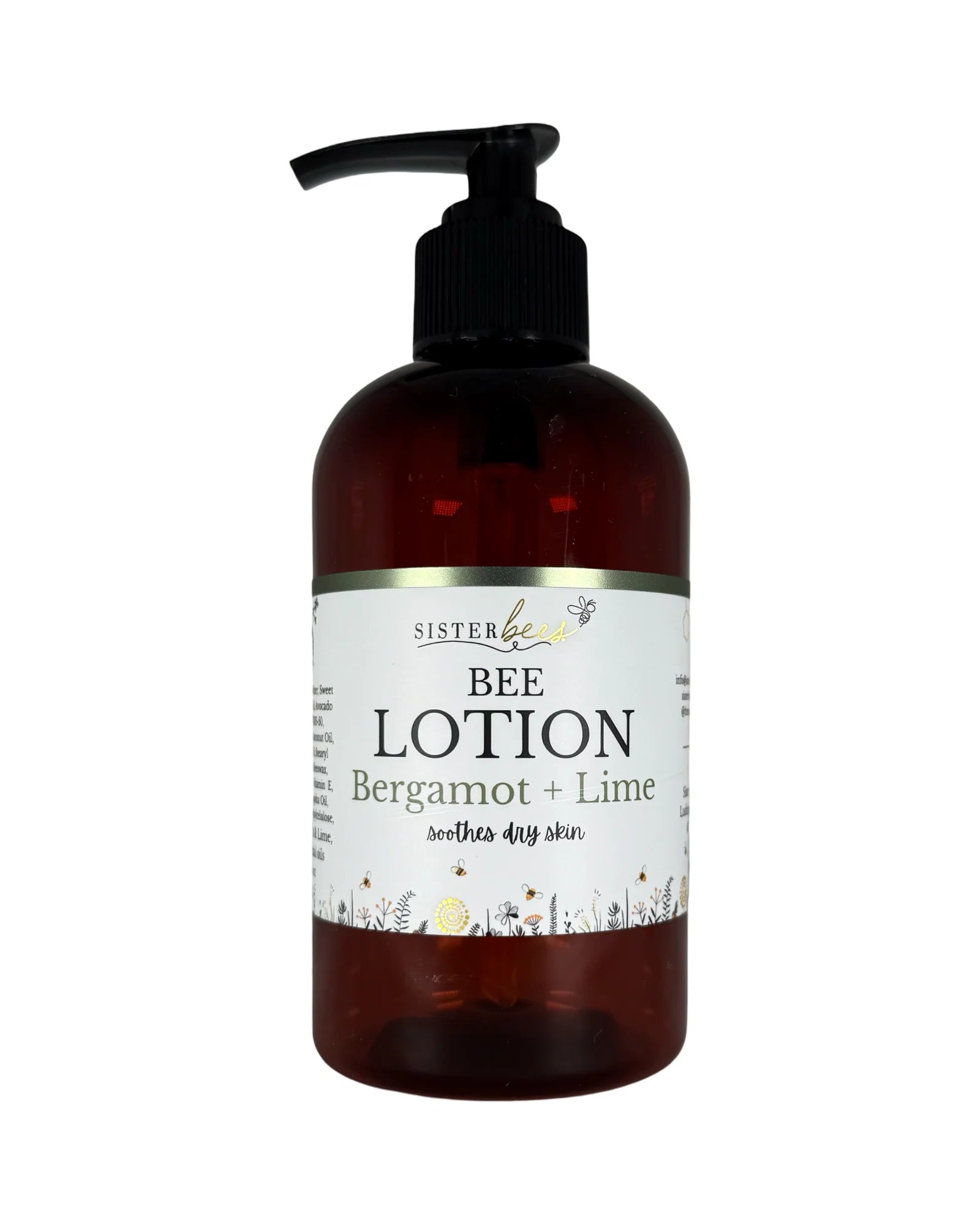 Bergamot and Lime Honey Bee Lotion is a luxury moisturizer that softens skin. Honey and beeswax hydrate and repair while creating a barrier to hold in moisture. Furthermore, aloe vera, jojoba and coconut oil are all natural remedies for restoring dry skin.