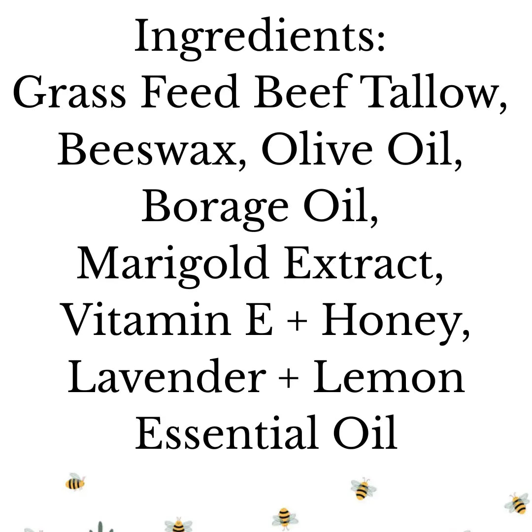 Soothe and nourish your skin with our Lavender + Lemon Tallow Balm—crafted with a simple, minimal ingredient list that’s perfect for sensitive skin. This rich, lotion-like balm provides calming, anti-inflammatory relief for eczema, psoriasis, and everyday dryness. (2 oz)